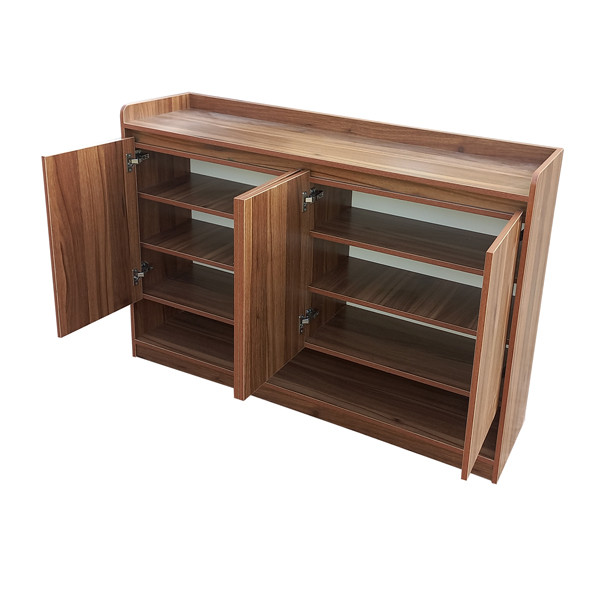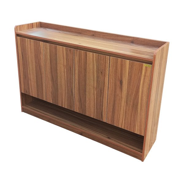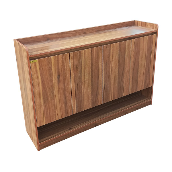 خرید جاکفشی مدرن ساده با درب های کلاسیک ساده 4 طبقه با گنجایش تا 20 جفت کفش و جنس درجه یک و ضد خش با دربهای آرام بند خودکار و کشوی جای لوازم برس و واکس میباشد این جاکفشی مدرن دو درب یکی از پر فروش ترین جاکفشی های در حال تولید است که زیبایی و کیفیت این جاکفشی مورد تایید و امتیاز بسیار بالایی از دید خریداران دارد لولای درب این جاکفشی از درب های آرام بند بسیار با کیفیتی استفاده شده که میتواند سالیان سال درب این جاکفشی را حفاظت کند ابعاد طبقات این جاکفشی مدرن استادارد میباشد به طوری که 20 جفت کفش استاندارد سایز بزرگ را به راحتی داخل خود جای میدهد این جاکفشی به علت فروش بالا قیمت تولید بسیار مناسبی دارد و از این رو کالایی با کیفیت و قیمت ارزان آن میتواند نقات قوت این جاکفشی زیبا باشد.