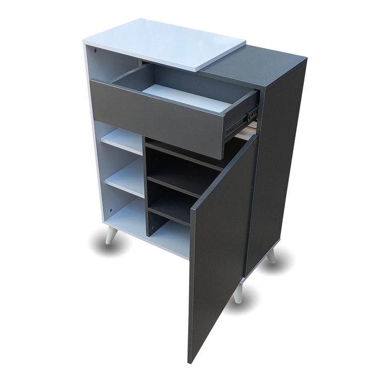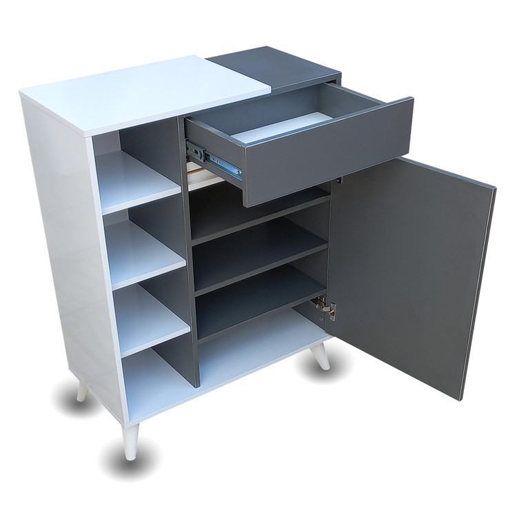 همچنین کشویی در بالای آن جهت قرار دادن لوازم مربوط به کفش مانند واکس ،فرچه و ... طراحی شده است. جاکفشی الیانا در رنگ های مختلفی طراحی و تولید می شود.