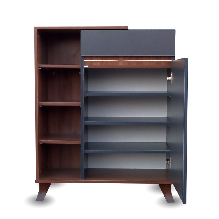 جاکفشی الیانا دارای یک درب کمد و یک کشو می باشد و می توان 12 جفت کفش با سایزهای مختلف جای داد. همچنین طبقات قسمت کناری قابلیت دمونتاژ شدن دارد تا برای گذاشتن کفش هایی با پاشنه و ساق بلندتر بتوانید طبقه را برداشته و کفش ها را به راحتی بدون هیچ گونه آسیبی در جاکفشی خود قرار دهید.